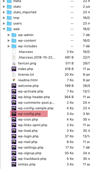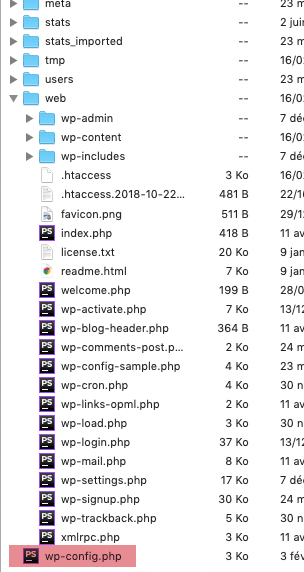 Puisque la racine de votre hébergement est protégée, inaccessible depuis les navigateurs, c’est un lieu idéal pour notre wp-config.php.